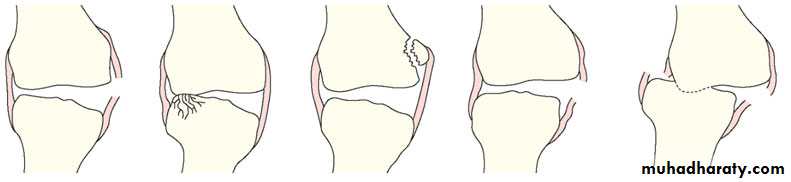 Avascular necrosis of nearby bony end or segment, this occurs in certain regions where the blood supply of a bony end (usually inside a joint) is critical and seriously affected by the fr. this leads to serious changes which may ends in damage to nearby joint and serious functional deficit.