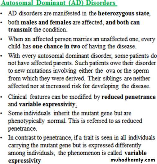 • Progressive neurological deterioration is one of the most common presentations. These diseases are mostly autosomal dominant , examples would be early-onset familial forms of dementia, Parkinson’s disease , Huntington disease The triplet repeat disorders cause an interesting group of syndromes and have specific features• Huntington disease: