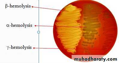 • α-hemolysis: partial RBCs destruction Greenish discoloration of agar. S.pneumoniae, Viridans streptococci