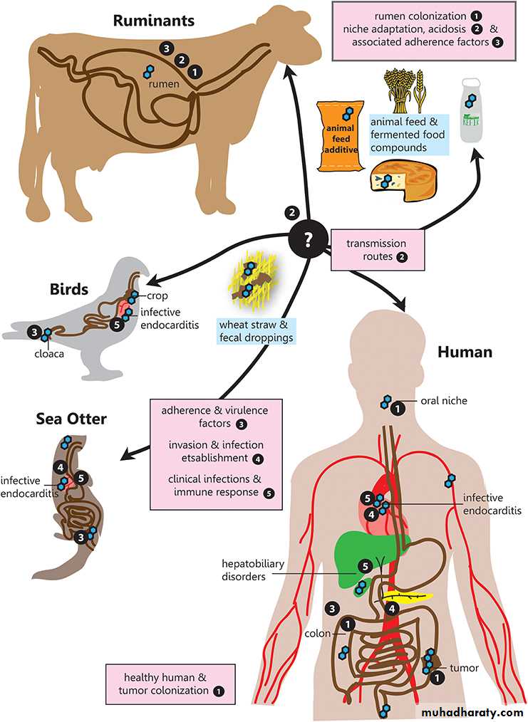 An important unique property is that there is a remarkable association between S. bovis infection and colon cancer!!! In some series 50% of people with S. bovis