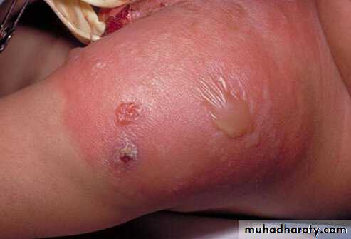 • Focal suppuration (abscess) is typical of staphylococcal infection. From any one focus, organisms may spread via the lymphatics and bloodstream to other parts of the body.