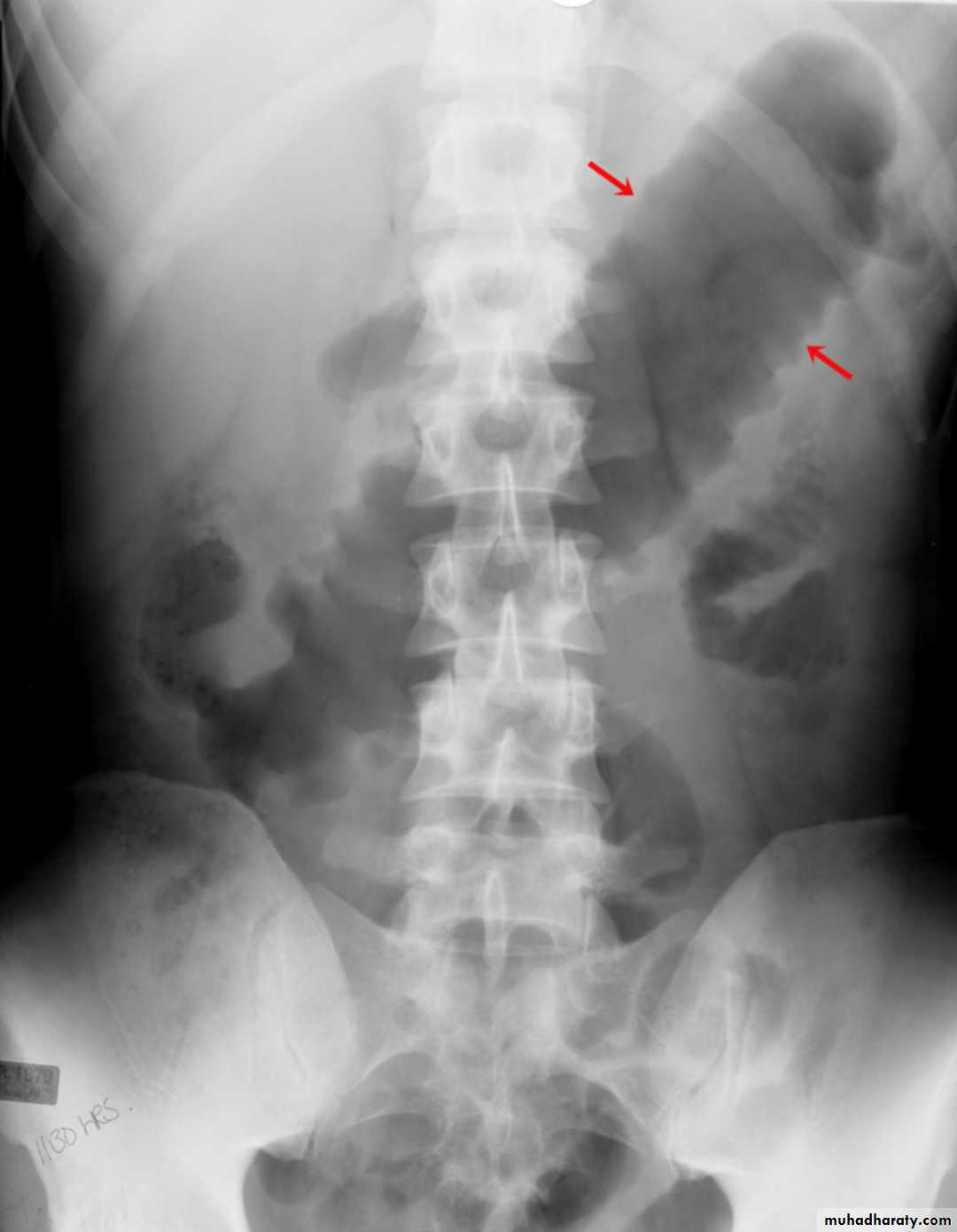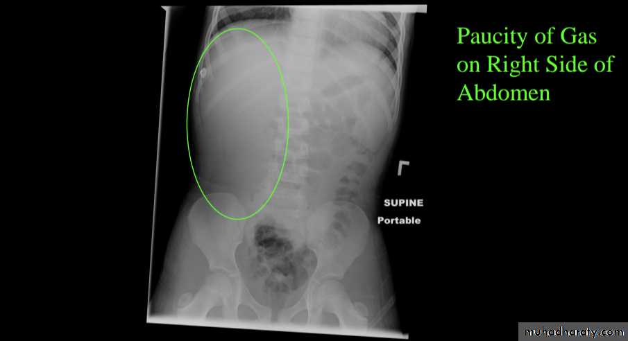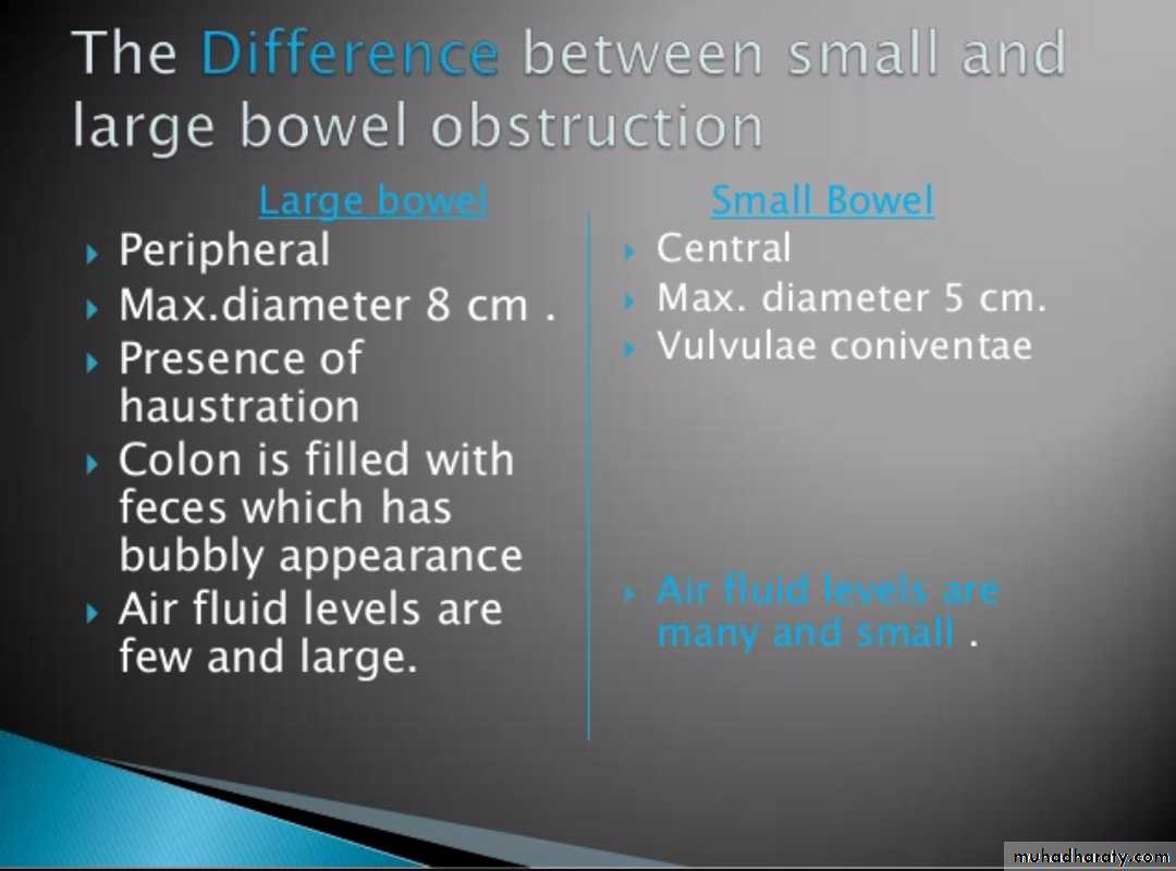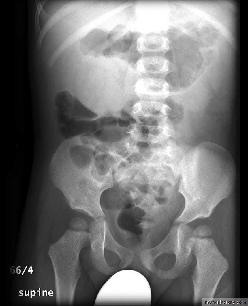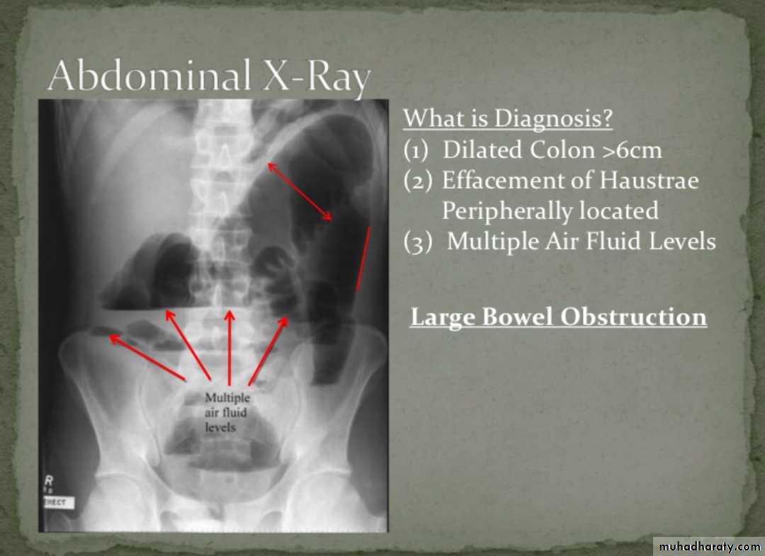 In most cases, the abdominal radiograph will have the following features: