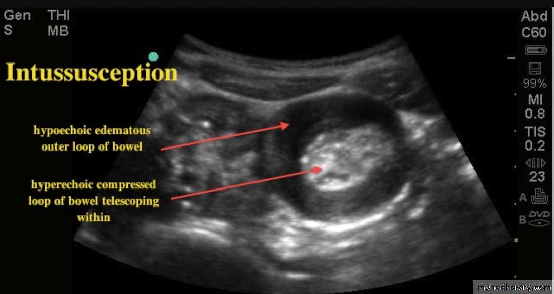 Intussusceptions occurs when one segment of bowel is pulled into itself (or a neighboring loop of bowel) It is an important cause of an acute abdomen in childrenIntussusceptions may also occur in the adult population where it is usually caused by a focal lesion acting as a lead point.