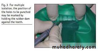 To use this method, the dam is held in the desired position in the mouth, or on the stone cast, over the teeth to be included in the isolation.
