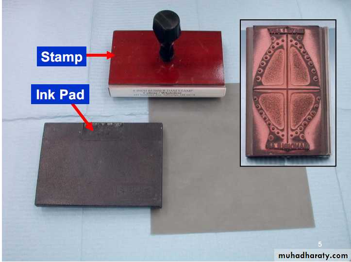 Rubber stamps provide a very convenient and efficient way of marking the dam for punching .There are commercially available stamps, or stamps can be made by any rubber stamp manufacturer from a pattern, or any custom design.