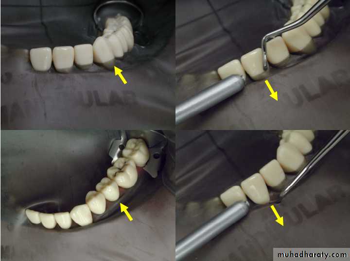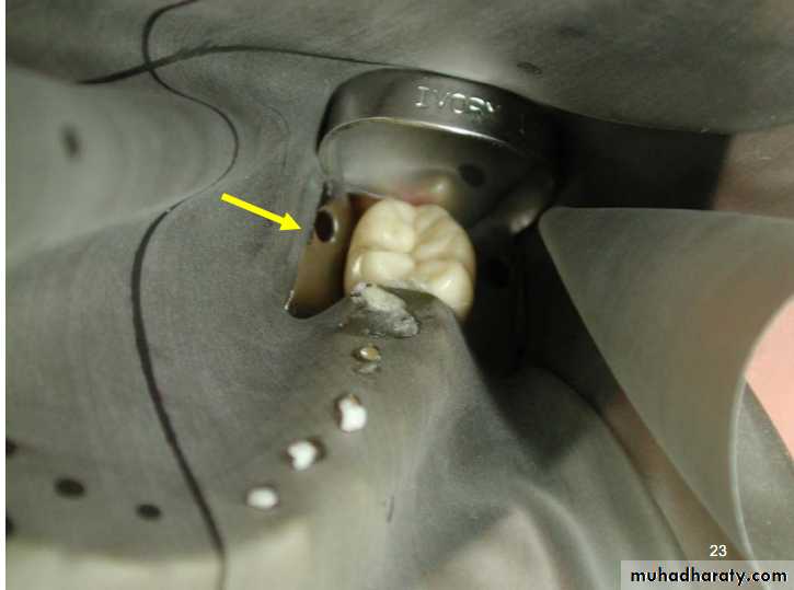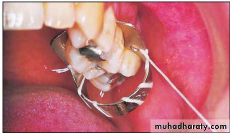 The main disadvantage of winged retainer is interference with placement of matrix bands, and wedges.The retainer should be tied with a dental floss before carrying it into mouth. This allows retrieval of the retainer or its broken parts if accidentally swallowed or aspirated