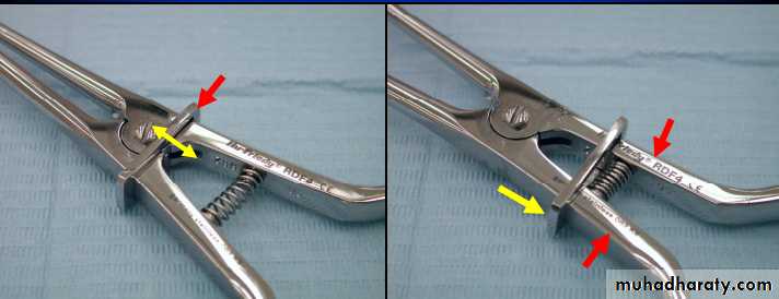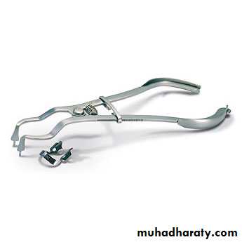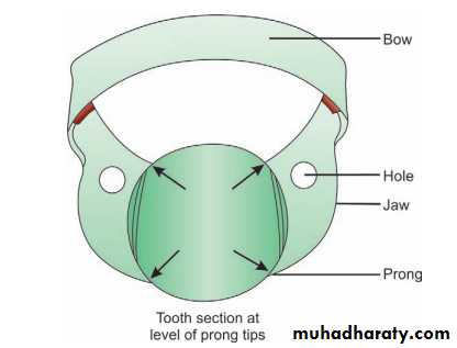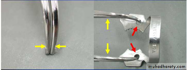 Rubber dam forceps are used to carry the clamp to the tooth.They are designed to spread the two working ends of the forceps apart when the handles are squeezed together