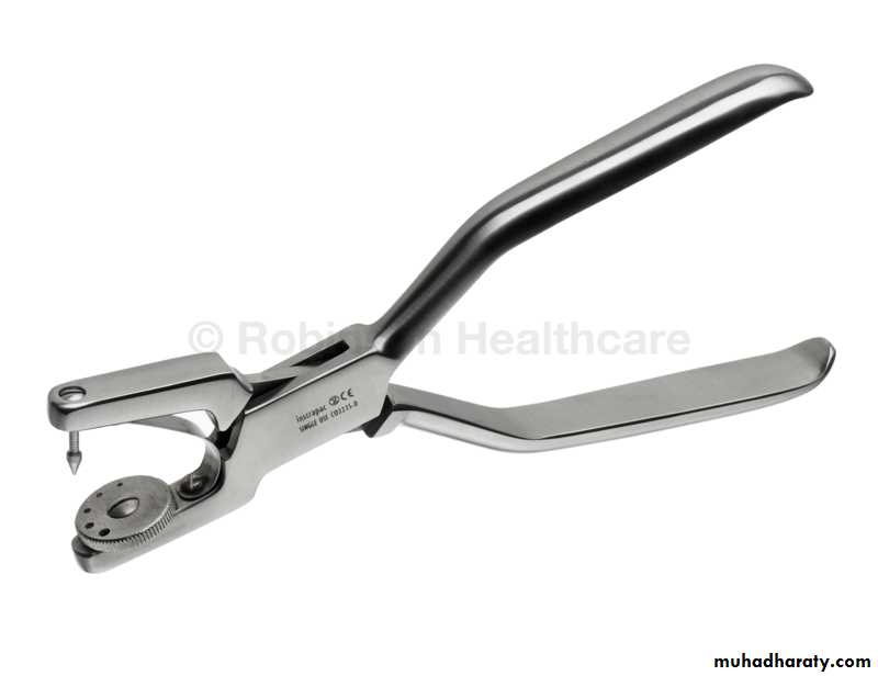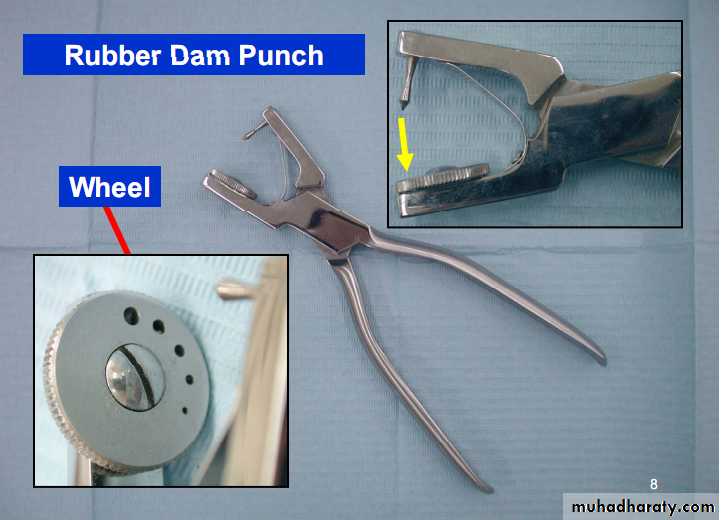 It is a precision instrument having a rotating metal disk with six holes of varying sizes and a tapered sharp pointed plunger.It is used to cut the appropriate sized holes in the rubber dam material.