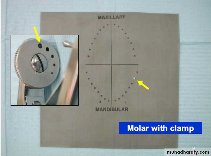 Rubber dam TemplateTemplates are available to guide the marking of the dam