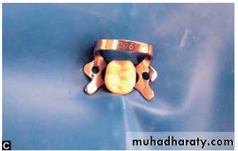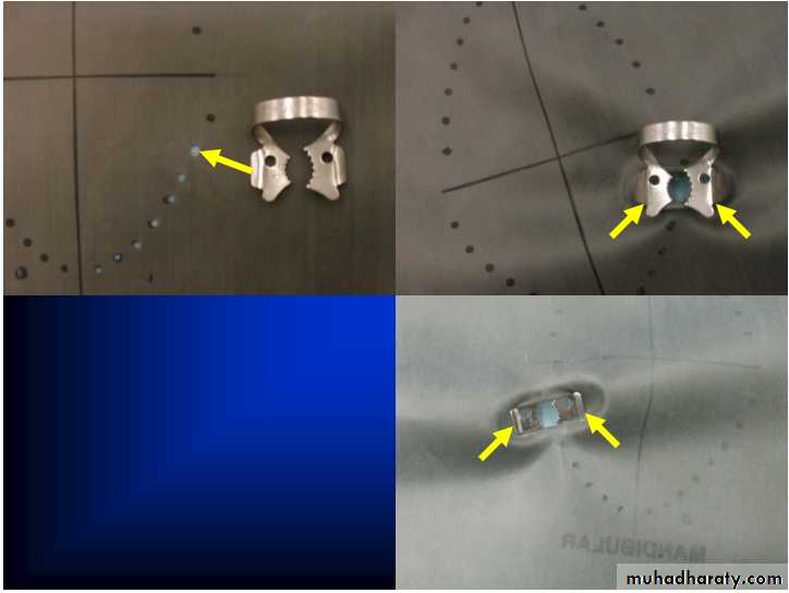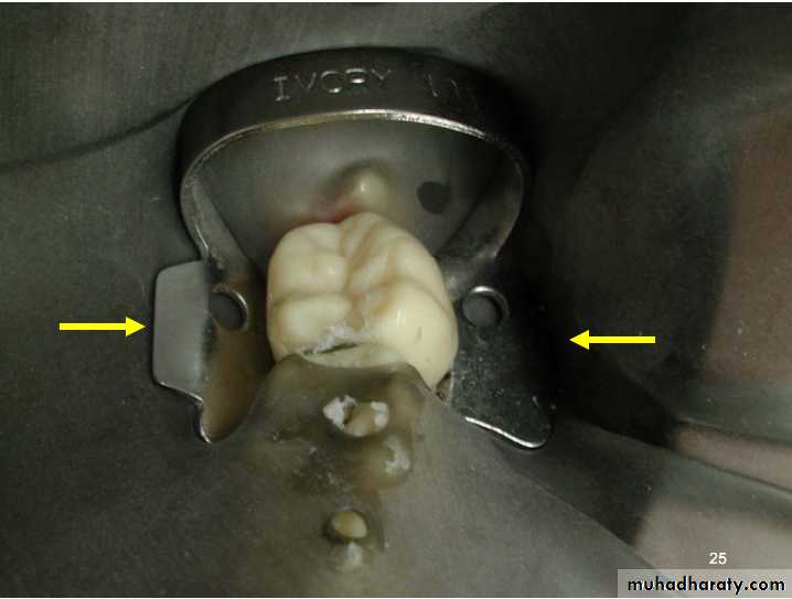 The retainer anchors the rubber dam material to the tooth which is posterior most to the isolated site.The retainer can be winged or wingless.