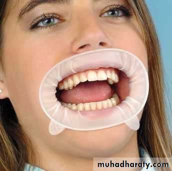 They are used to expand the mouth opening more in the vertical rather than horizontal direction . This makes them ideal for use when working on the gingival border of upper and lower front teeth and for the adjustment of orthodontic bandsMouth Prop