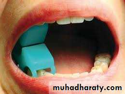 A mouth prop should establish and maintain suitable mouth opening, thus help in tooth preparation of posterior teeth .It is placed on the side opposite to treatment site, placed between mandibular and maxillary teeth.