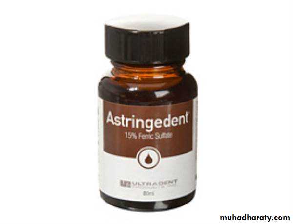 Astringents (Biologic Fluid Coagulants)These chemicals coagulate blood and gingival fluid in the sulcus, thus forms a surface layer which seals against blood and fluid seepage.