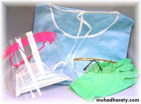 • all members of the dental team (who are exposed to blood or blood contaminated articles) should be vaccinated against hepatitis B.Personal Protection Equipment :