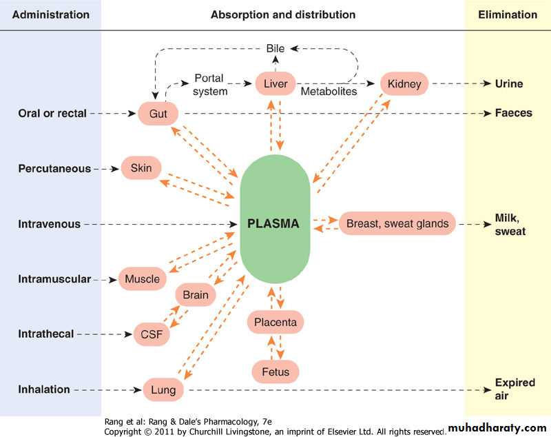 • Drug: type, physicochemical characters, dissolution, concentration, and pharmacological function.• Route of administration and the biological effect: blood flow rate , and the permeability and width of the surface that the drug is absorbed.