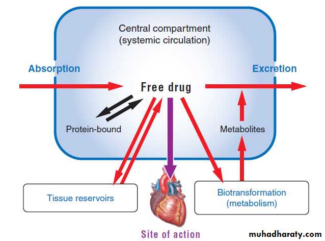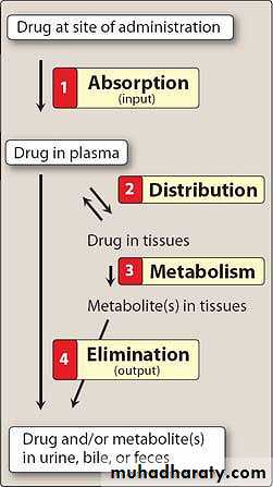 PharmacokineticThe pharmacokinetic processes of absorption, distribution, and elimination determine how rapidly and for how long the drug will appear at the target organ. The pharmacodynamic concepts of maximum response and sensitivity determine the magnitude of the effect at a particular concentration.