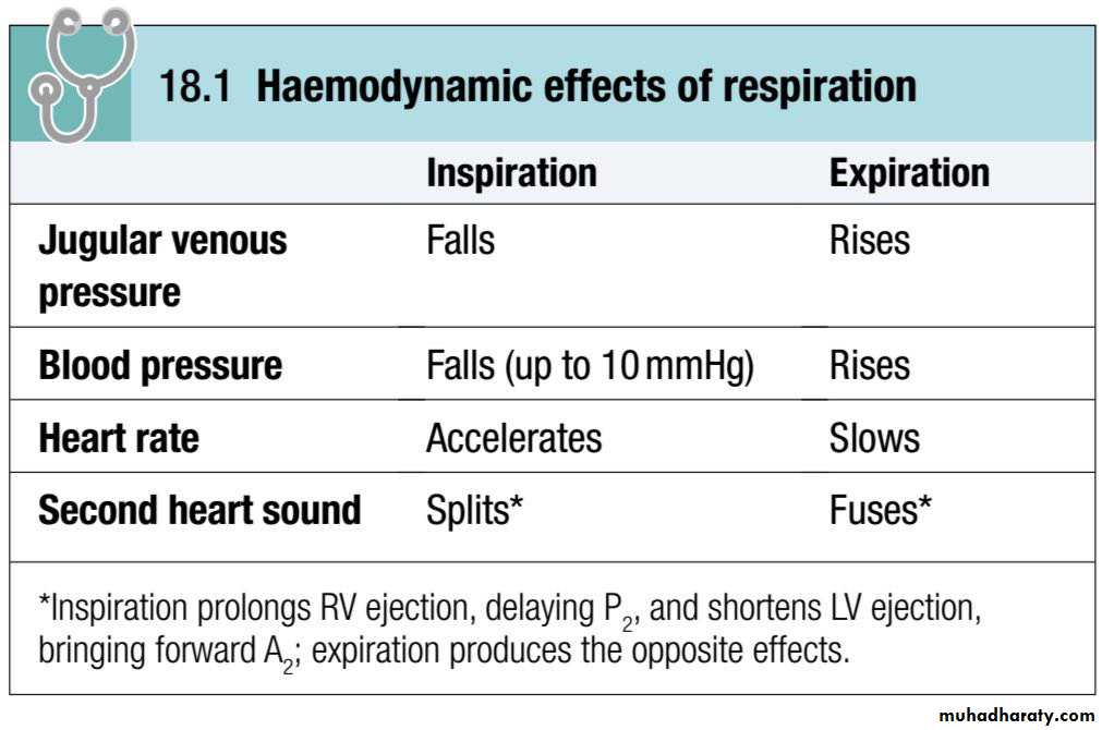 There is a fall in intrathoracic pressure during inspiration that tends to promote venous flow into the chest, producing an increase in the flow of blood through the right heart.