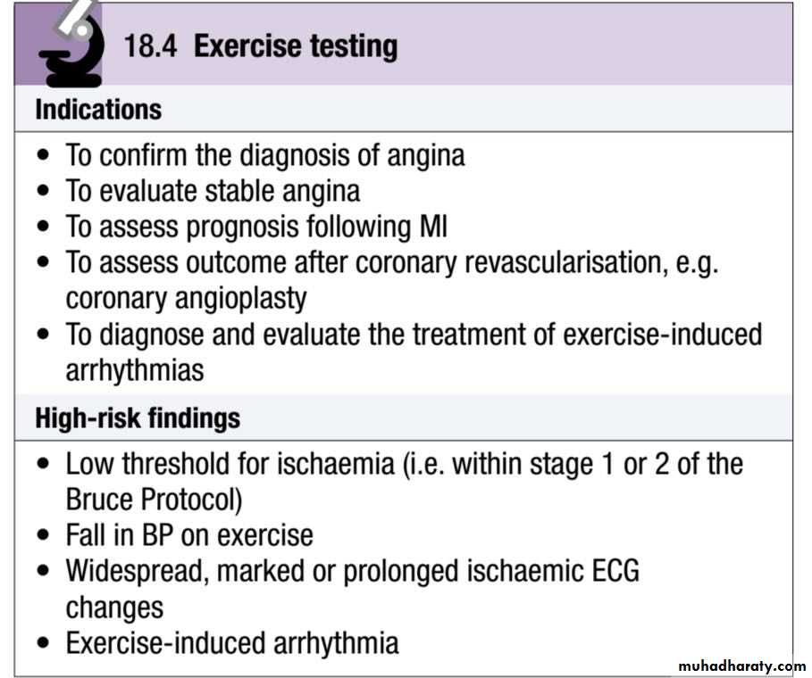 A test is ‘positive’ if anginal pain occurs, BP falls or fails to increase, or if there are ST segment shifts of > 1mm.