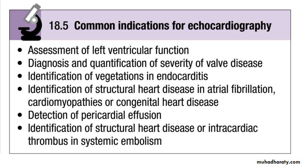 This produces high-resolution images, which makes the technique particularly valuable for investigating patients with prosthetic (especially mitral) valve dysfunction, congenital abnormalities (e.g. atrial septal defect), aortic dissection, infective endocarditis (vegetations that are too small to be detected by transthoracic echocardiography) and systemic embolism.