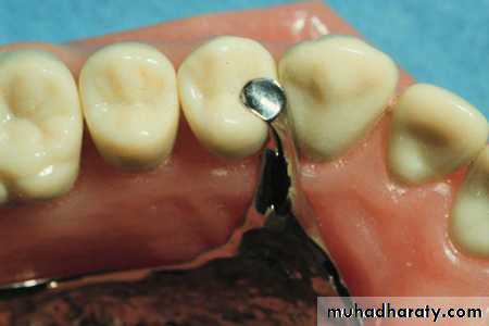 Proximal minor connector:Those that join the clasp assembly to the major connector.If the minor connector is located on a proximal surface of a tooth adjacent to edentulous areas, it should be broad buccolingually to provide strength but thin mesiodistally to minimize encroachment on the saddle area.