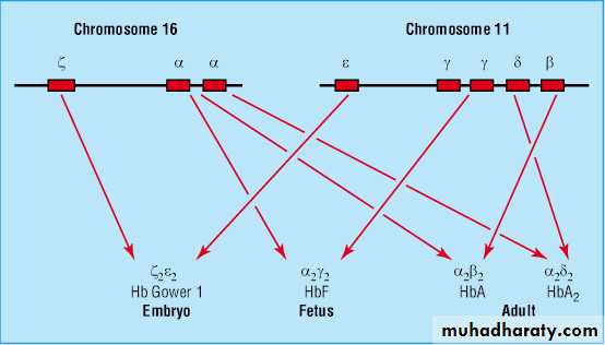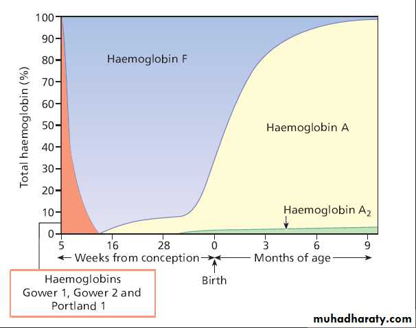 • Embryonic hemoglobins( Gower-1 (ζ2ε2), Gower-2 (α2ε2), and Portland (ζ2γ2))• Hb F (α2γ2)