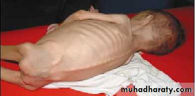 The usual cause of death are intercurrent infections and severe malnutrition.