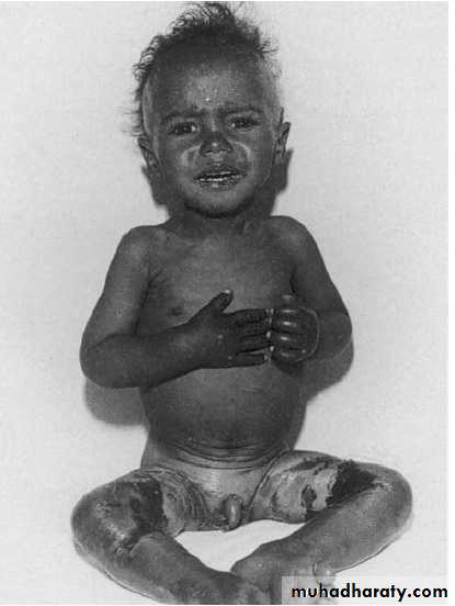 Kwashiorkor;fair-to-normal calorie intake with inadequate protein intake (presence of odem).