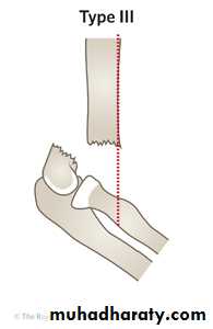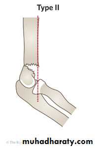 It is important to distinguish a medial epicondyle fracture (common) from a medial condyle fracture (very rare). Medial condyle fractures are intraarticular, extending into the elbow joint and require urgent open reduction internal fixation (ORIF).