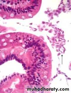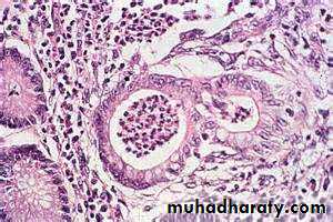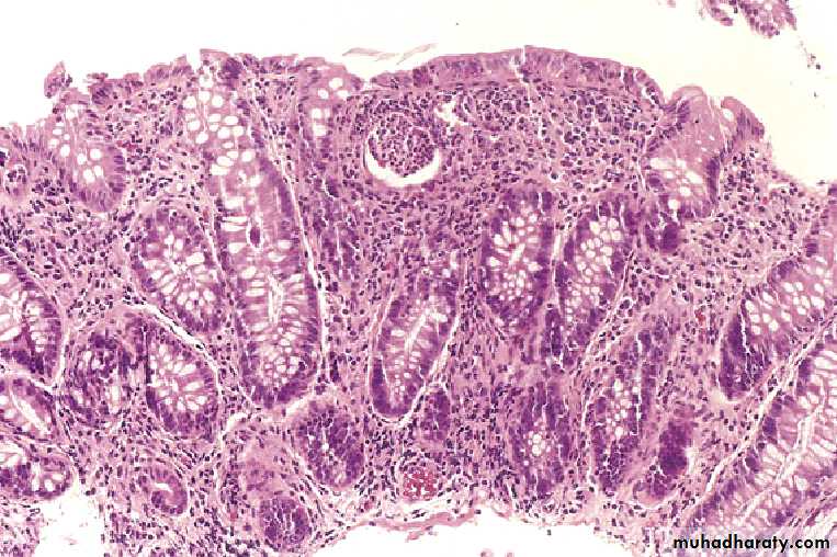Pseudomembranous colitis ; AB allows C. difficile to grow & releases toxins, The inflammatory response volcanolike eruptions of PMN from colonic crypts that form mucopurulent pseudomembranes.