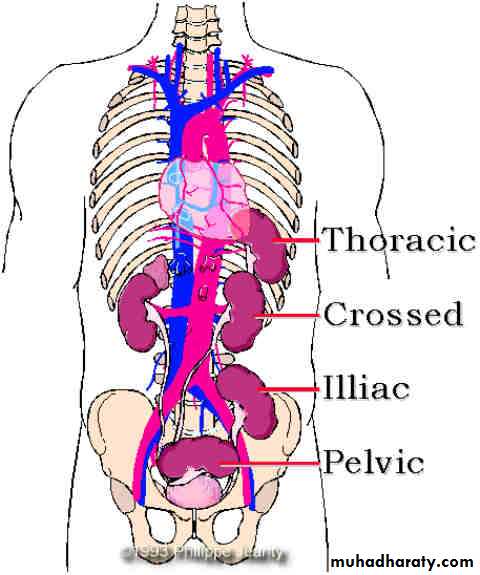 comprise a diversity of abnormalities, ranging from: complete absence kidney, supernumerary Kidney aberrant location, orientation, and shape of the kidney ,aberrations of the collecting system, & blood supply.
