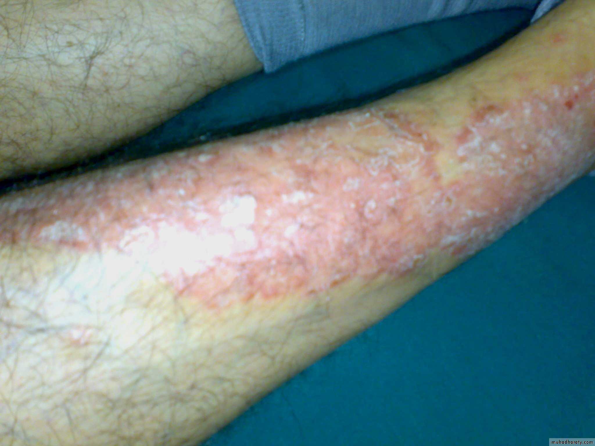 The characteristic rash of psoriasis may be widespread, or confined to the scalp, natal cleft and umbilicus, where it is easily overlooked.