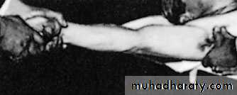 Pain is severe.The patient supports the arm with the opposite hand and is loathe to permit any kind of examination.