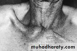 Discomfort is marked; there may be pressure on the trachea or large vessels, causing venous congestion of the neck and arm and circulation to the arm may be decreased.