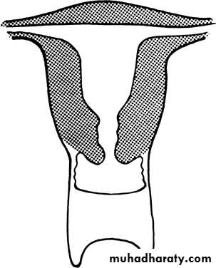 Complete or partial duplication of the vagina, cervix, and uterus characterizes this anomaly.IV-Complete or partial bicornuate uterus:-