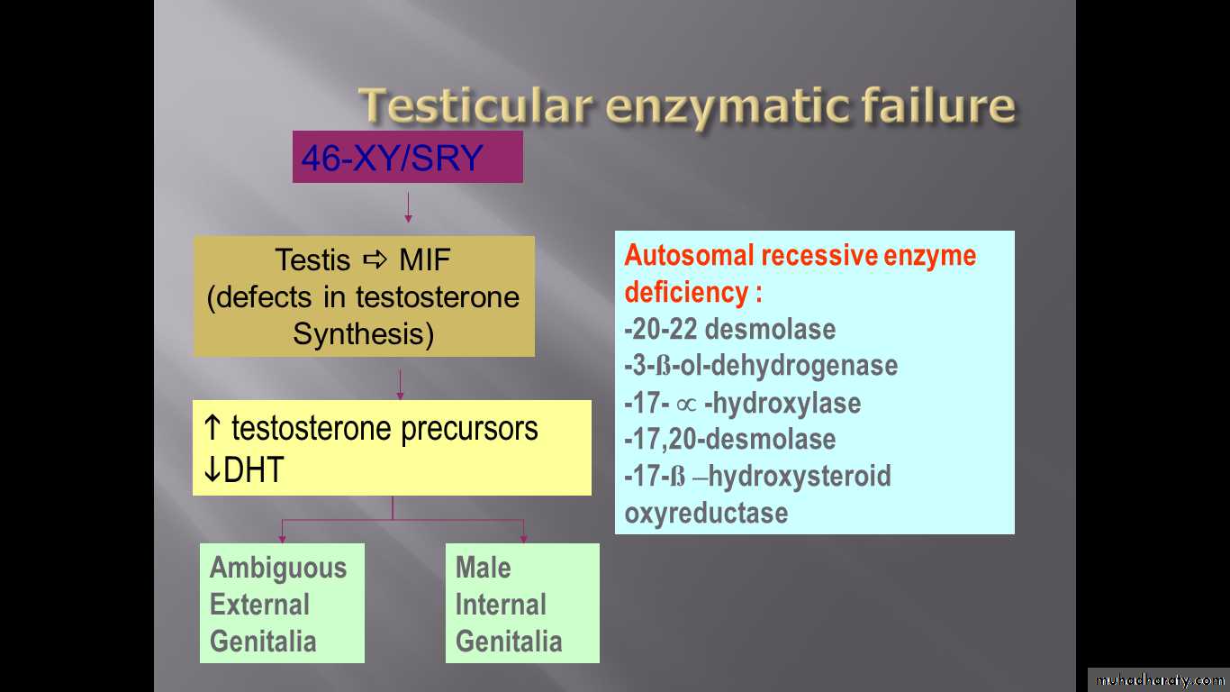 Many biosynthetic defect in the formation oftestosterone from cholesterol, usually the defect