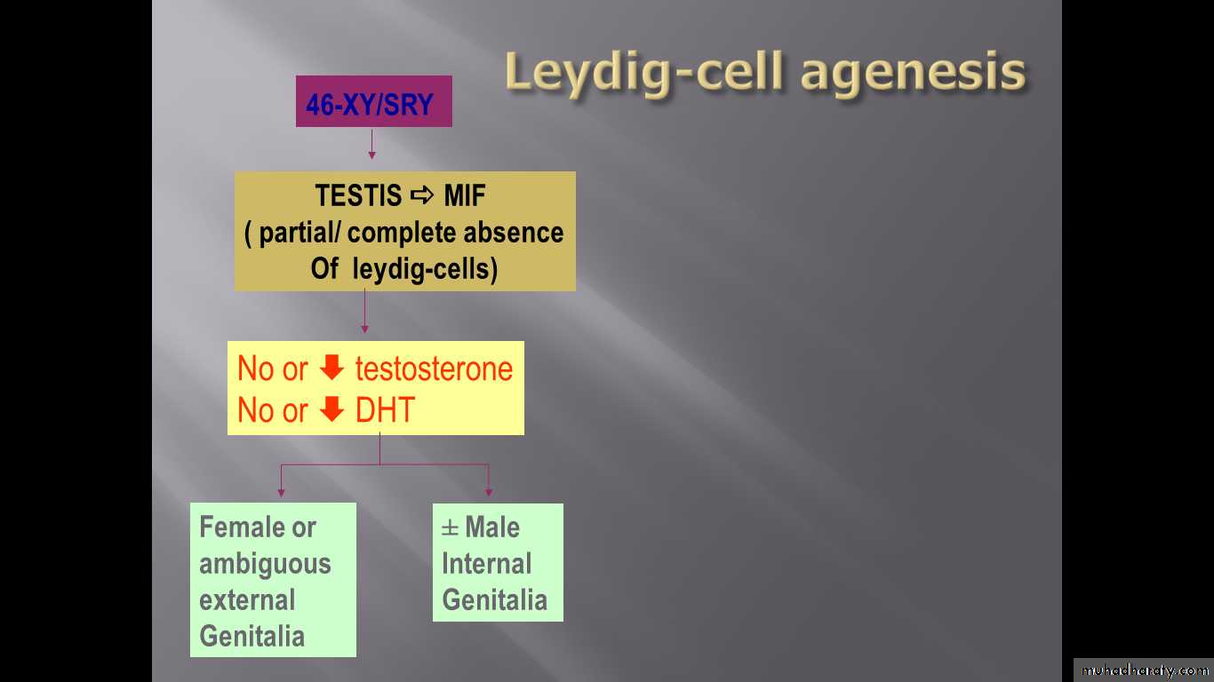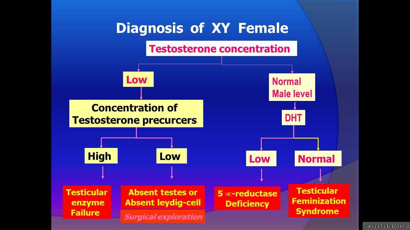 - Musculinized female due to congenital adrenal hyperplasia (CAH), or androgen stimulation from other source.- undermusculinized male.