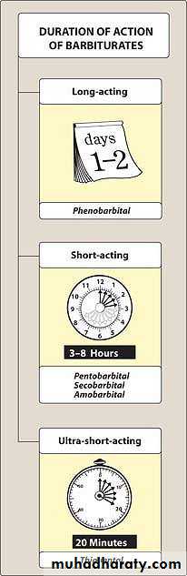 • Ultra-short acting :thiopental (20 minutes)• Short acting: pentobarbital, secobarbital, amobarbital(3-8)hours