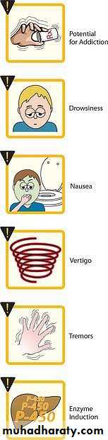 • Circulatory collaps (by toxic dose)• Enzyme induction: Barbiturates induce P450 microsomal enzymes in the liver. Therefore, chronic barbiturate administration diminishes the action of many drugs that are dependent on p450 metabolism example ( phenytoin , anticoagulants)