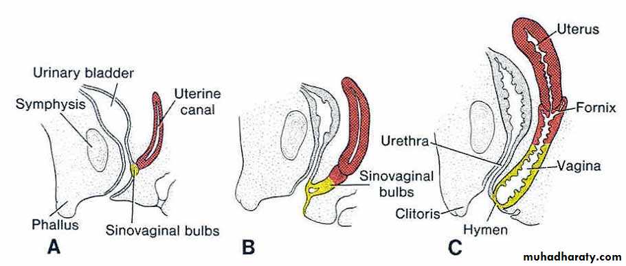 By the 5th month, the vaginal plate is entirely canalized to form vagina.