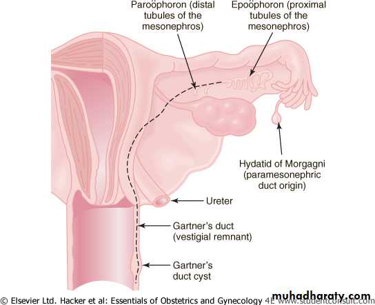 Remnants of the mesonephric (wolffian) ducts that may persist in the anterolateral vagina or adjacent to the uterus within the broad ligament or mesosalpinx.