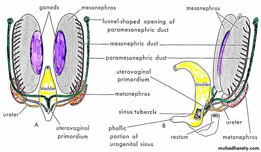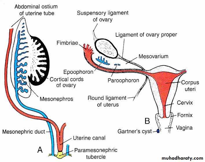 Genital Ducts in FemaleA(After 8th week), B(After descent of Ovary)