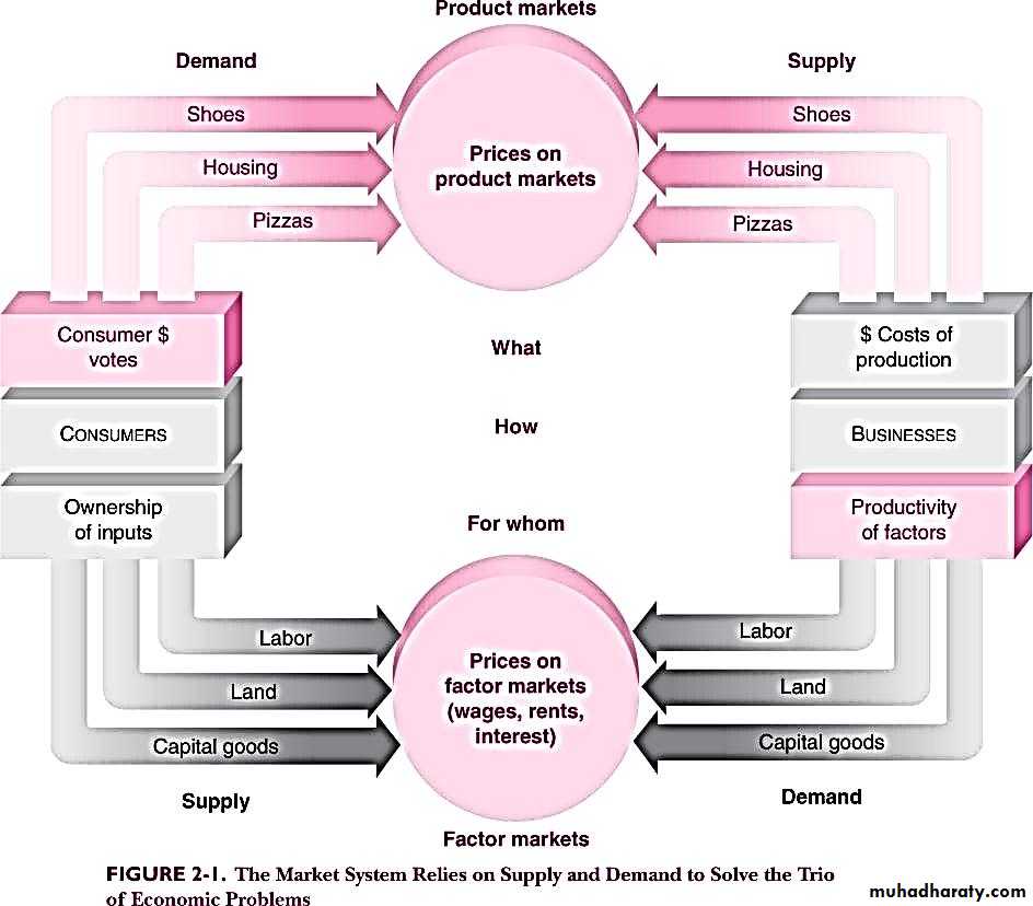 3- For whom things are produced depend largely on the factor prices (wages, rents, interest rates, and profits) that are determined by household supply and business demand in the factor markets.