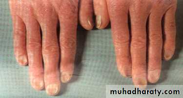 Nail lesions : (Koilonychias) Flattening , thinning lead to brittle, spoon- shaped nail.