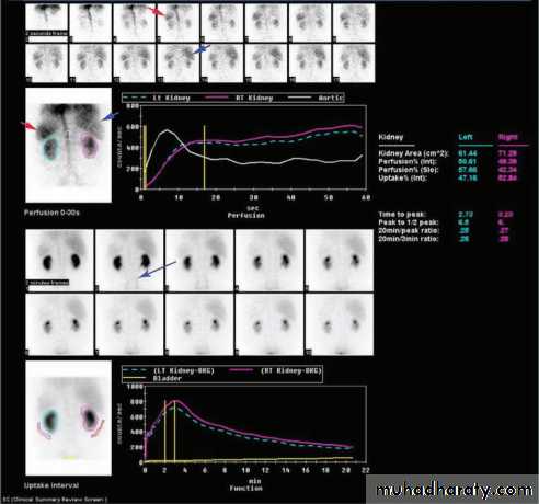 Despite advances in US, CT, and MRI, there remain manyareas where scintigraphy remains the easiest, least expensive,and most accurate test. Radiopharmaceuticals are well suitedfor evaluating renal function including blood flow, glomerularfiltration rate (GFR); effective renal plasma flow (ERPF); nephron uptake and clearance; renovascular hypertension/Renal artery stenosis (RAS); acute and chronic renal failure, ischemicnephropathy; pyelonephritis, trauma or surgical complications;renal transplant function, obstruction, and acute or chronicrejection; and ureteral obstruction and vesicoureteral reflux.Radionuclide renal studies are safe, minimally invasive andexpose the patients to radiation doses comparable or less thancompeting radiologic procedures