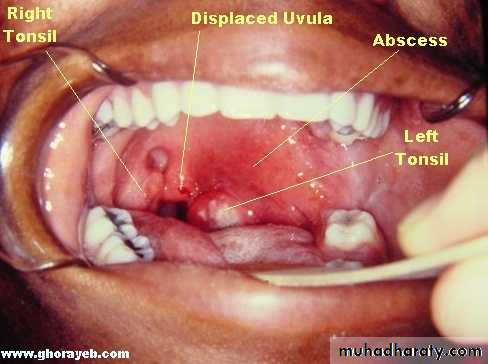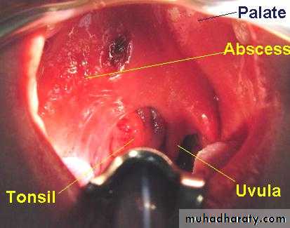 a. peritonsillar abscess(quinsy): is collection of pus between the tonsil and its bed.