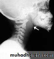 Lateral X-ray of the neck, which shows increase in prevertebral soft tissue shadow or an air-fluid level.
