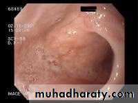 Endoscopy: fissuring, hyperkeratosis followed by fibrosis, web formation in the postcroid region.