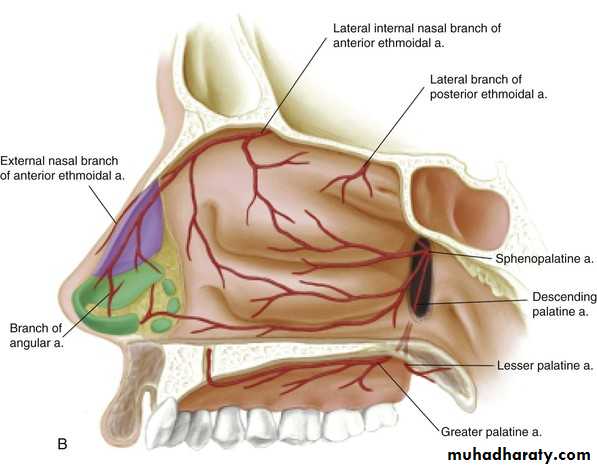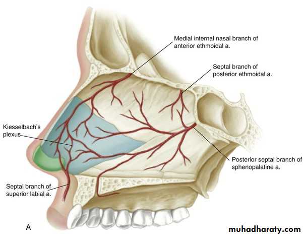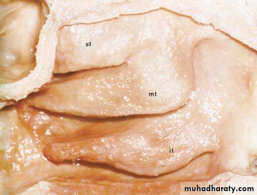 The olfactory neuroepithelium is distributed in 3 major areas:--The superior septum; the superior aspect of the
