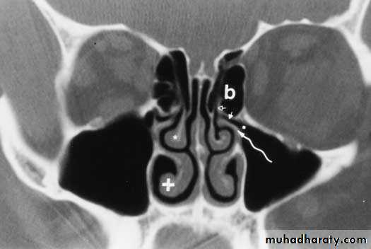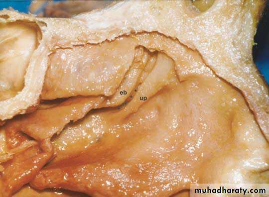 -The superior aspect of the middle turbinate. These structures define the olfactory cleft.