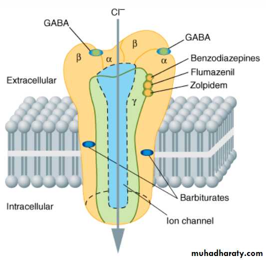 • Flumazenil (is a GABA-receptor antagonist) that can rapidly reverse the effects of benzodiazepines(competitively occupies a GABA-receptor without causing a functional change in CL channel) .• for intravenous administration only.